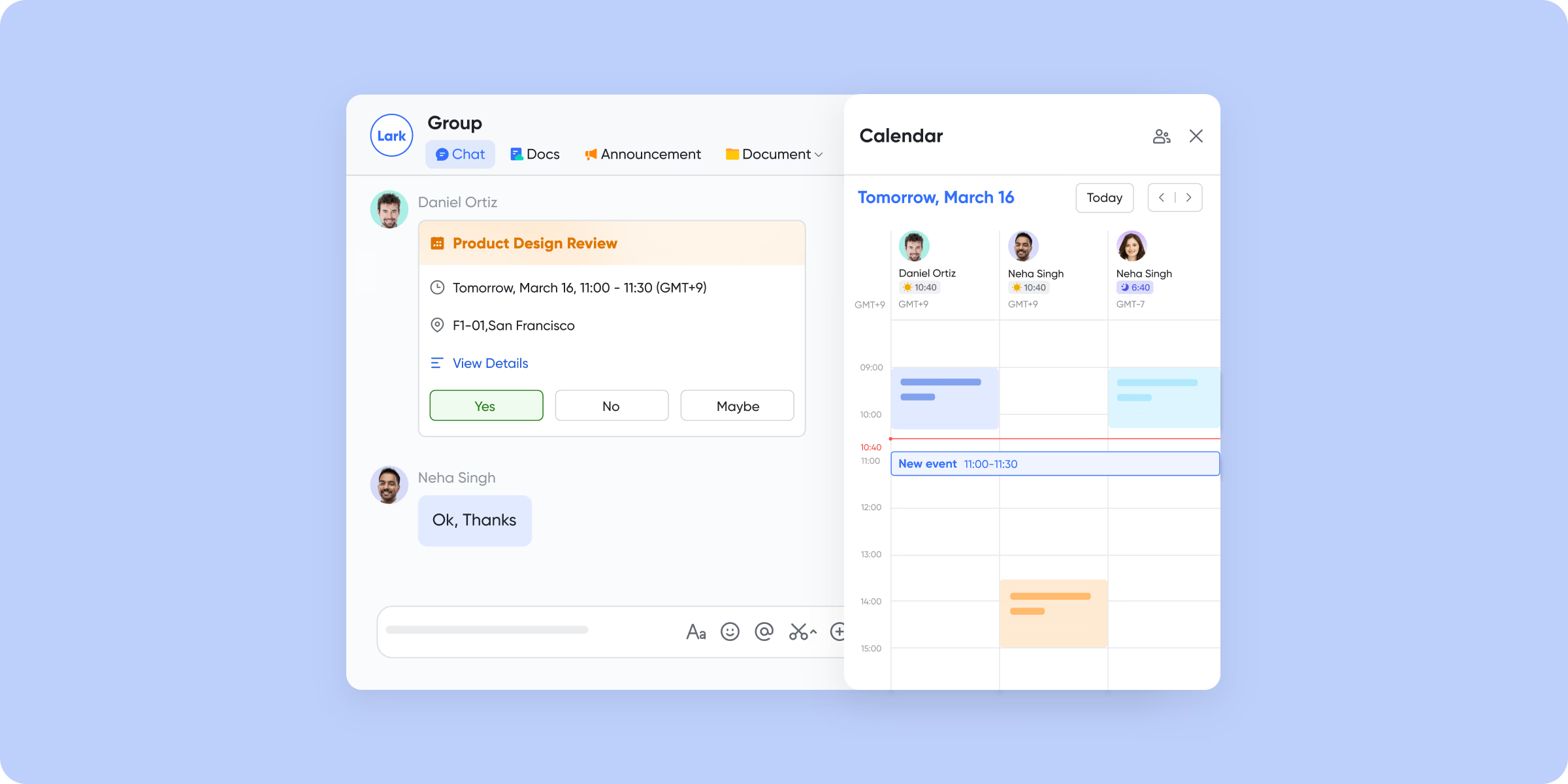Comparison with other platforms: Slack primarily focuses on messaging and requires additional integrations like Google Drive or Microsoft Office for full functionality. Microsoft 365 or Google Workspace offer comprehensive office and meeting tools, but they are often separated into different products (e.g., Teams, Office apps, etc.). In contrast, Lark consolidates everything into a single interface. As a result, Lark is often seen as a more streamlined solution for businesses looking to simplify their IT infrastructure instead of using Slack + Google + Zoom + Asana, companies can rely on one unified platform with lower management overhead.
