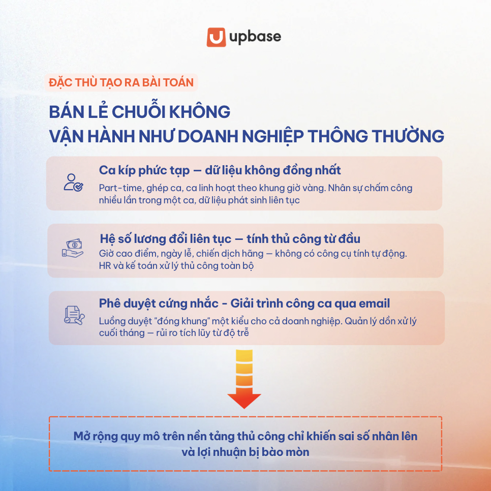 UpBase thiết lập hệ thống đăng ký ca trực và phê duyệt số hóa toàn diện, được cấu hình riêng biệt theo đặc thù của từng điểm bán: