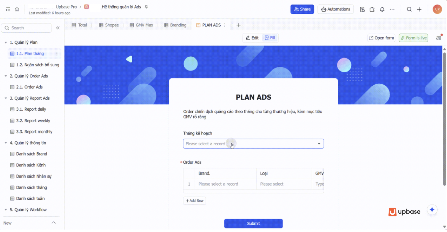- File order Ads branding - ghi nhận yêu cầu chạy Ads từ Brand Team