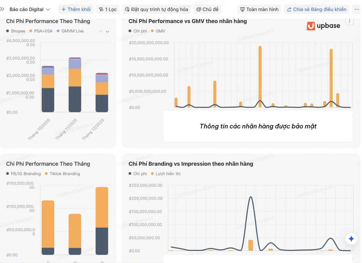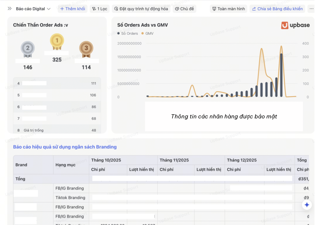 Tại Upbase, chúng tôi nhìn theo hướng khác. Vấn đề không nằm ở năng lực của team mà nằm ở chỗ dữ liệu ngân sách, trạng thái order, và hiệu suất Ads đang tồn tại ở bốn file riêng biệt, không liên thông với nhau và không liên thông với các nền tảng đang chạy thực tế. Khi thông tin bị phân mảnh như vậy, mọi quyết định đều cần thêm một bước tra cứu thủ công ở giữa. Ở quy mô đa brand, đa nền tảng, những bước đó cộng dồn thành chi phí vận hành thật sự đo bằng giờ làm việc, độ trễ ra quyết định, và cơ hội tối ưu campaign bị bỏ lỡ.