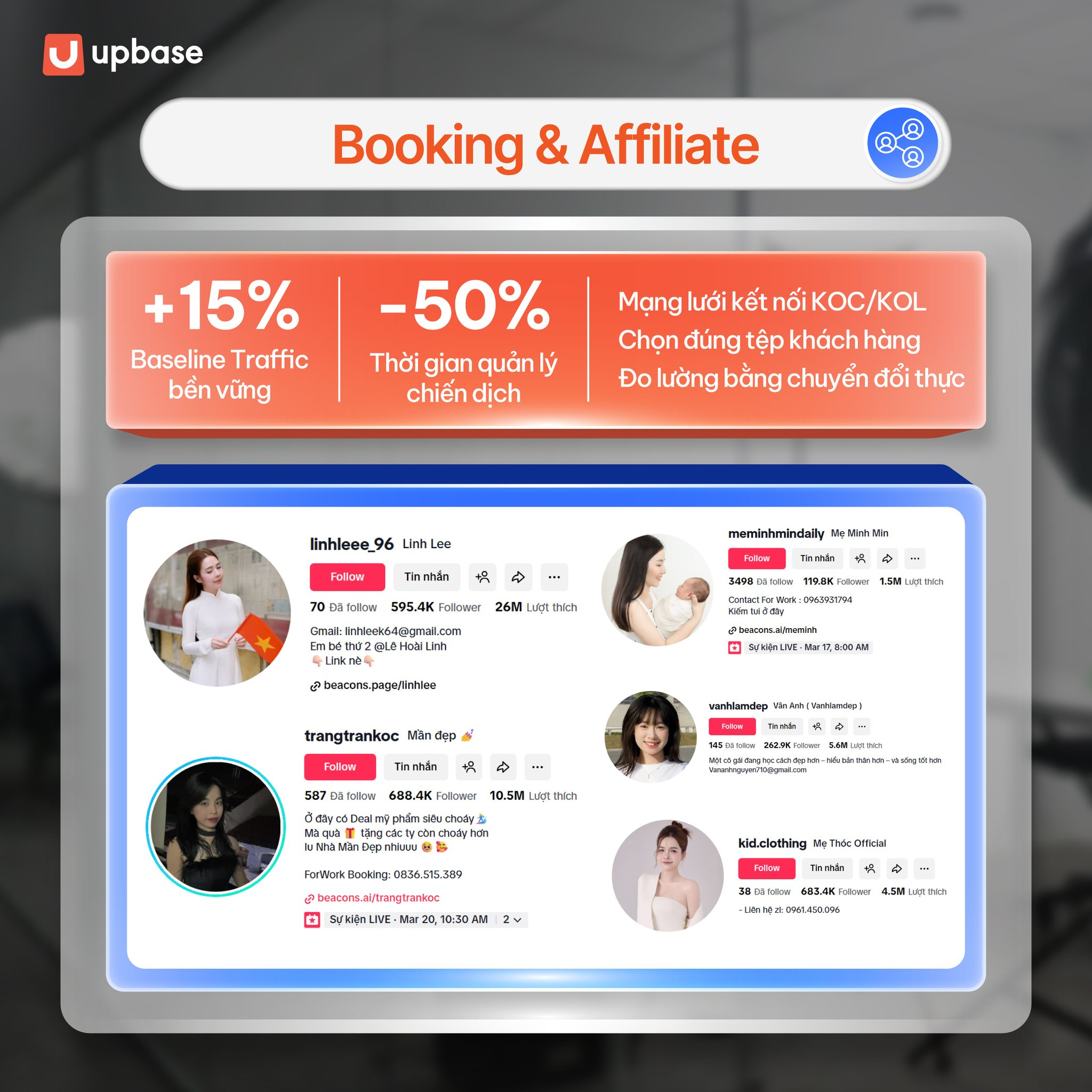 2.4. KOC, Booking & Affiliate – Mạng lưới KOC uy tín, cùng UpBase lan tỏa giá trị thương hiệu